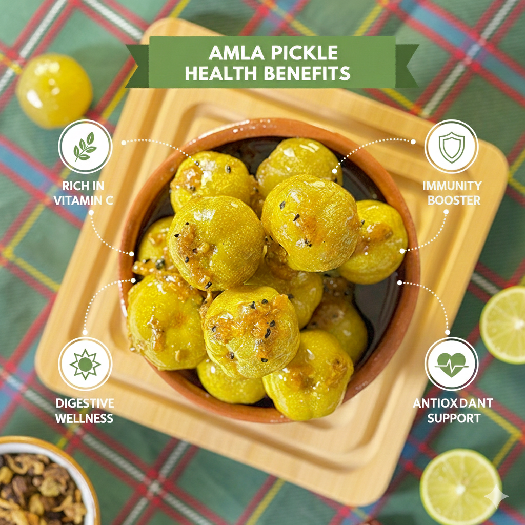 Amla Pickle, also known as Amlay ka Achar, is a traditional desi achar made from amla (Indian gooseberry). It’s known for its bold, tangy flavor and slightly bitter undertone, beautifully balanced with desi spices. This pickle is a staple in many households for its sharp taste and rich masala profile.
