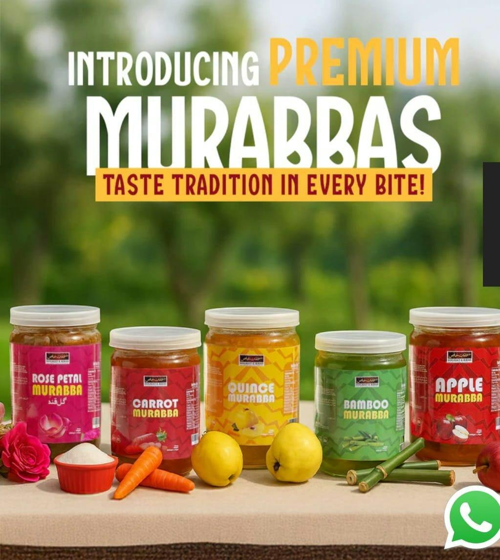 If you love traditional, health-packed treats, don't miss our complete range of murabbas—each crafted with authentic recipes and premium ingredients. Try our immunity-boosting Aamla Murabba (آملہ مربہ), vitamin-rich Carrot Murabba (گاجر مربہ), gut-friendly Quince Murabba (بہی مربہ), fiber-loaded Bamboo Murabba (بانس مربہ), and the cooling, aromatic Rose Petal Gulkand (گلقند). Each jar is a taste of tradition—delivered fresh across Pakistan.