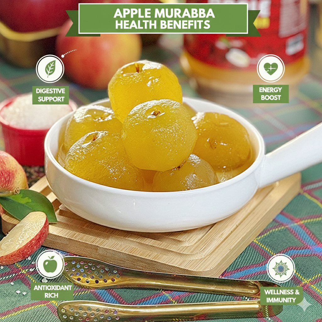 Our Apple Murabba is a delightful preserve made from fresh, juicy apples simmered with natural sweeteners and warming spices. This traditional murabba combines fruity sweetness with nourishing benefits—perfect as a tasty treat or a wholesome side to your meals.