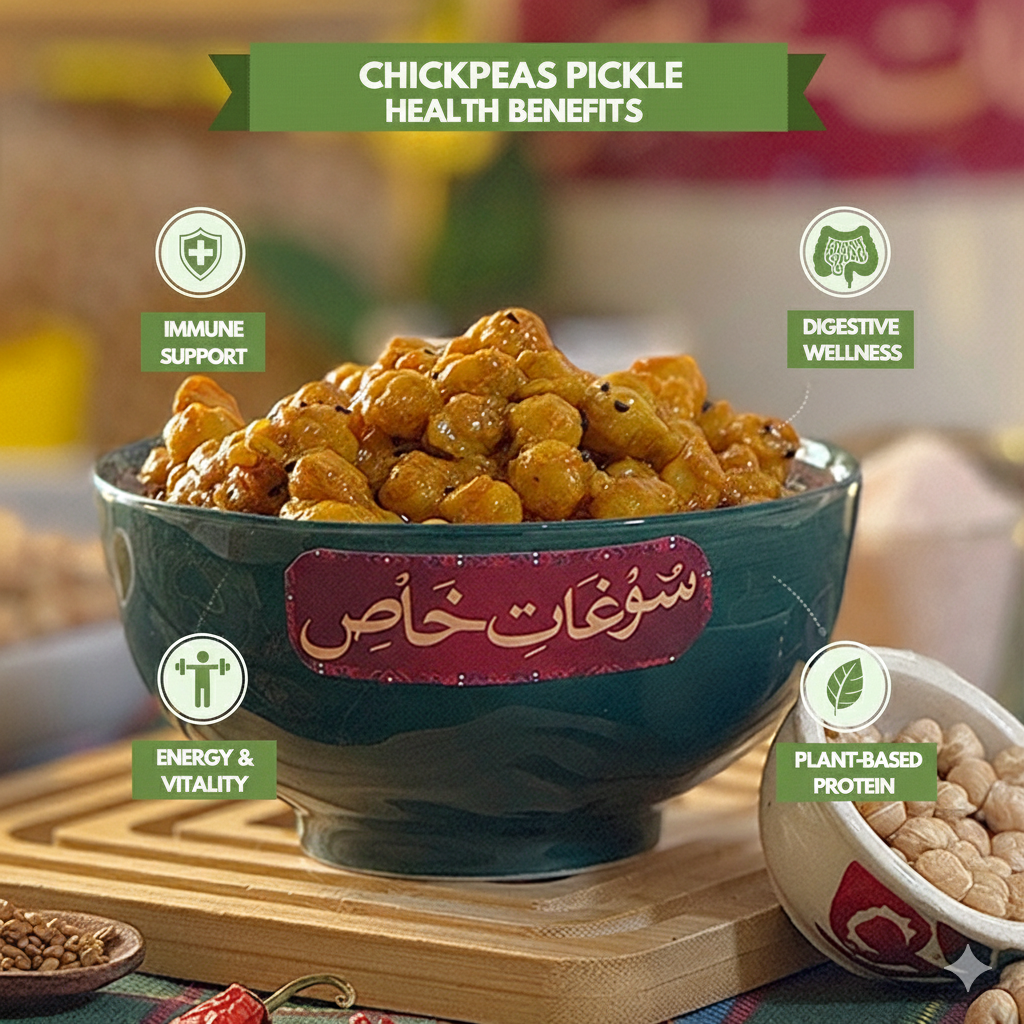 Now available online via Soghat-e-Khas, our Chickpeas Pickle is shipped fresh to your doorstep in Lahore, Karachi, Islamabad, and across Pakistan.