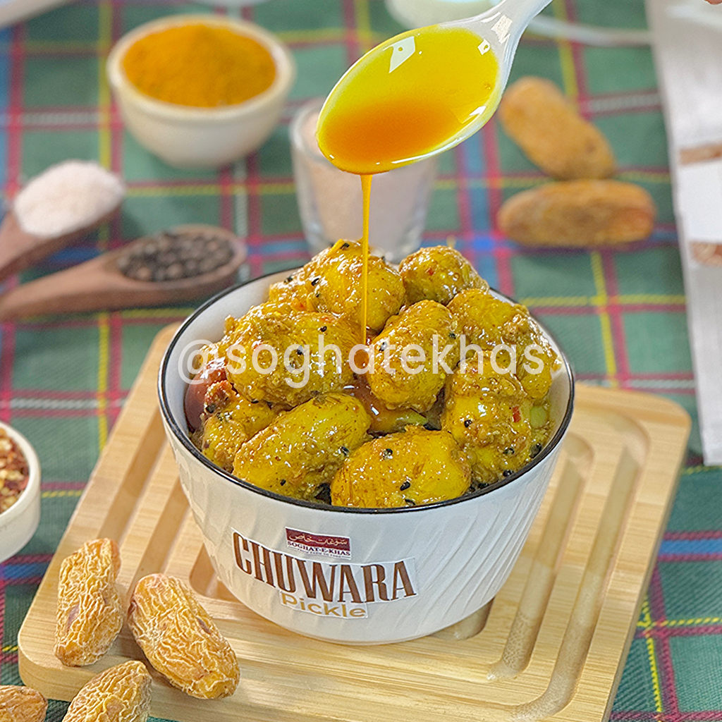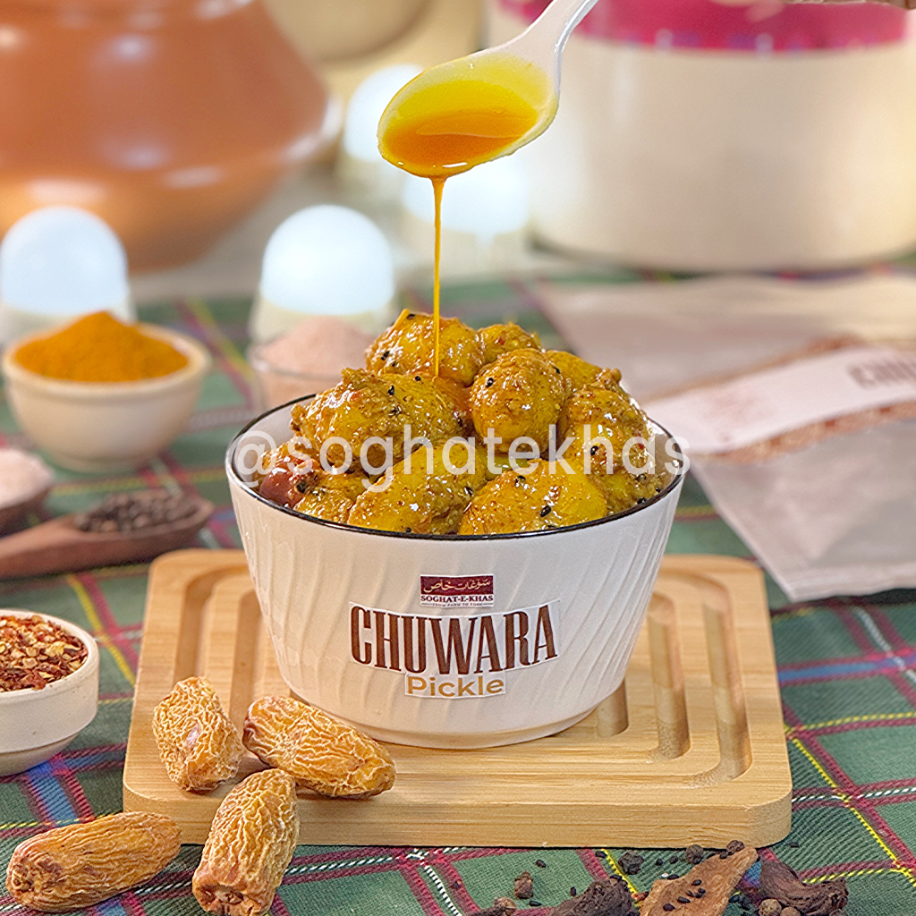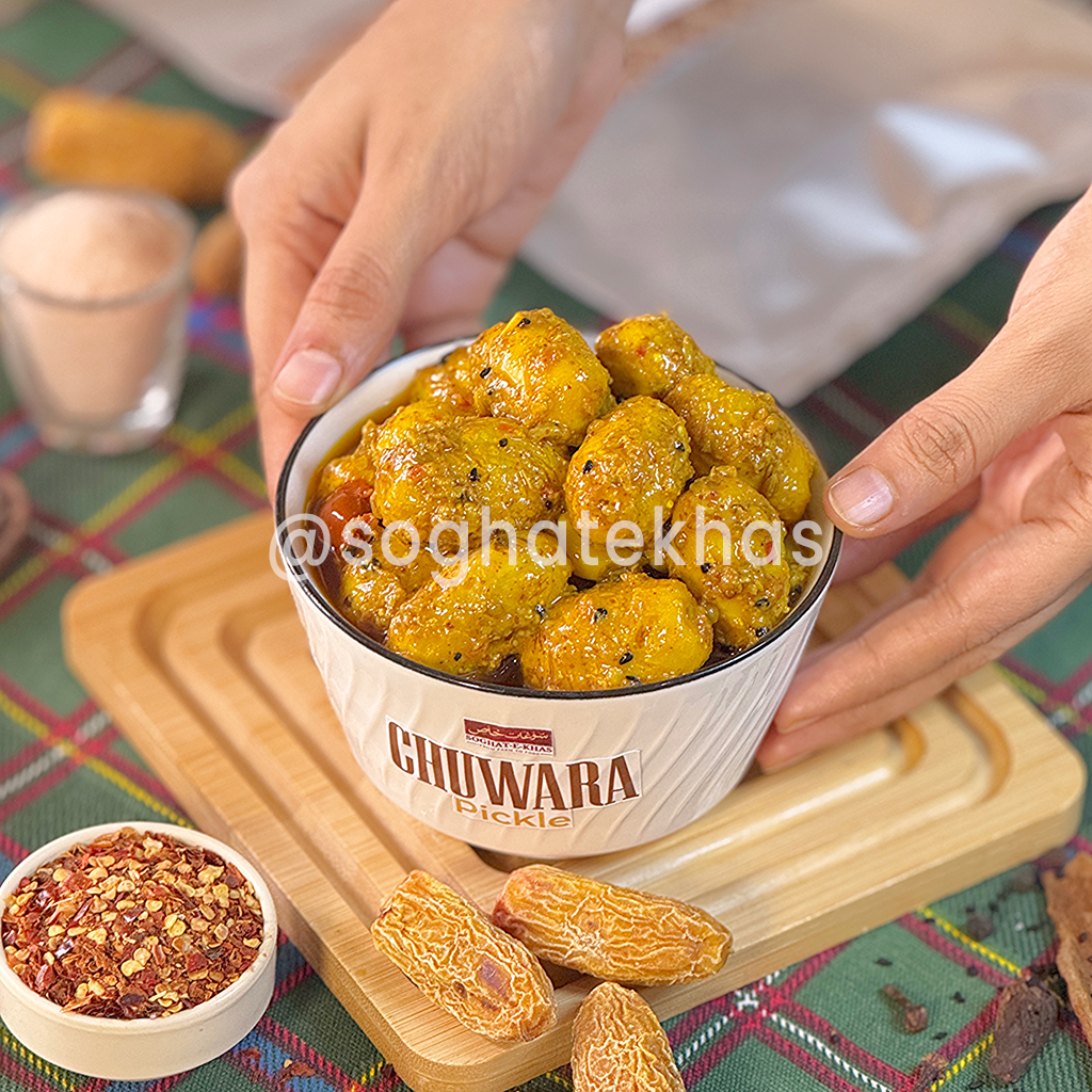 Discover the irresistible flavor of our Chuwara Pickle – a perfect fusion of sweetness and spice, made from premium dry dates and traditional desi spices. Each batch is carefully marinated in pure mustard oil with a special blend of fennel, turmeric, and red chili powder, creating a pickle that’s both comforting and exciting in every bite.