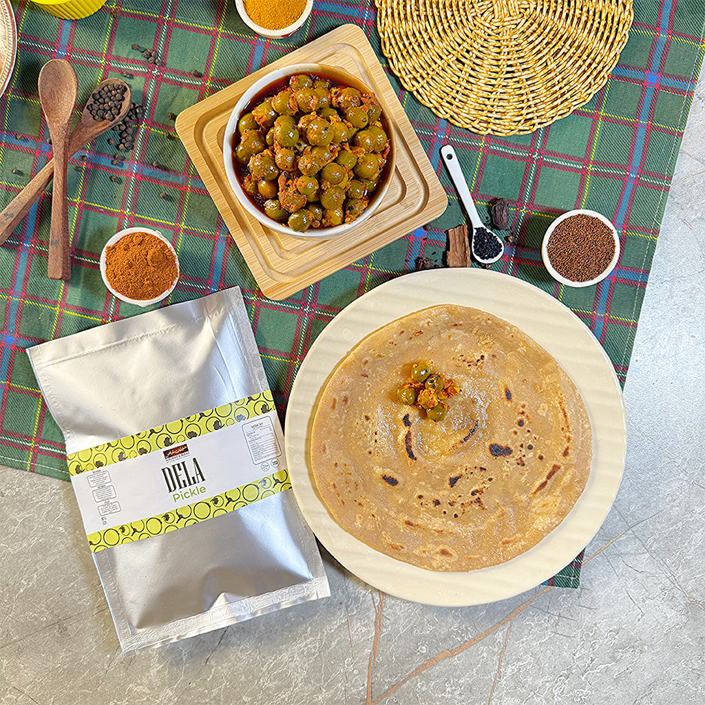 Dela Pickle (also called Desi Dela Achar) is a unique, spicy, and intensely aromatic traditional Pakistani pickle. It’s made with a rich blend of spices including timur (Sichuan pepper) that brings a subtle citrusy tingle and deep warmth to your meals. Perfect for those who love desi achars with strong flavor and a fiery personality.