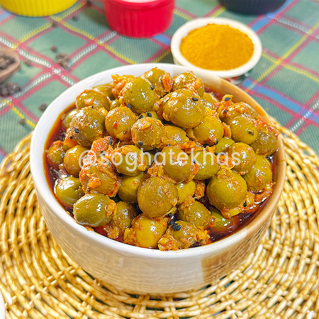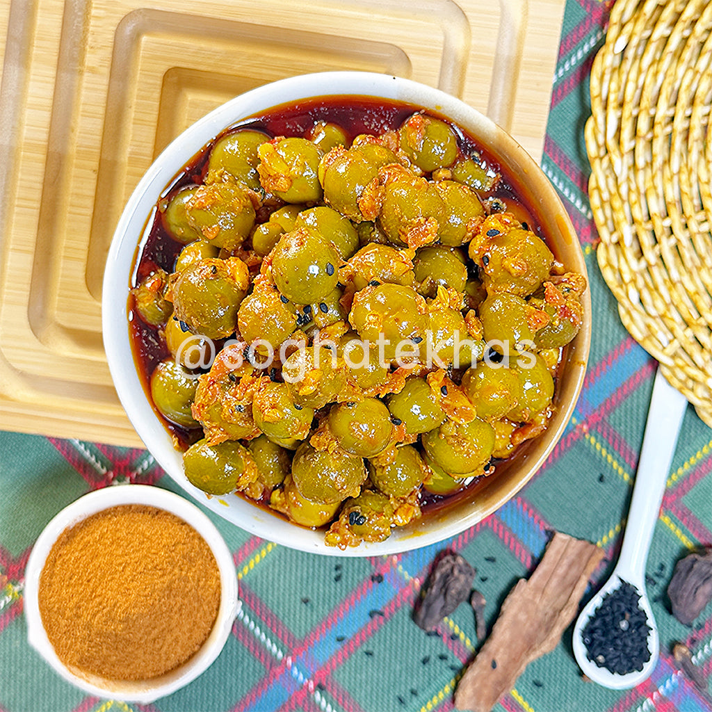 Dela Pickle (also known as Desi Dela Achar) is a bold and aromatic traditional pickle that captures the fiery, earthy essence of South Asian spices. Made from a carefully balanced blend of ground spices and Sichuan pepper, this achar offers a distinctive taste that’s both spicy and tingling — a true treat for those who love intense, flavorful pickles.