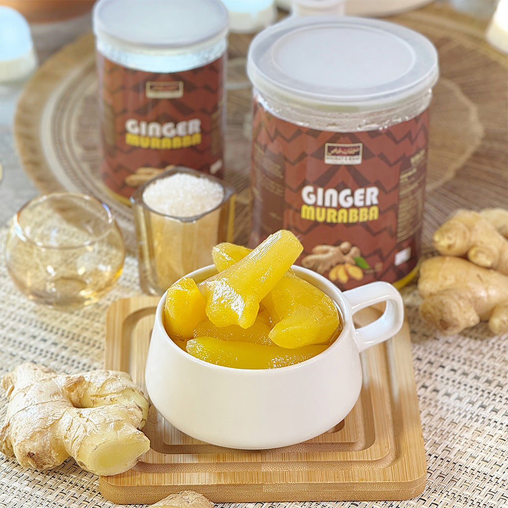 Ginger Murabba (Adrak ka Murabba) is a traditional Pakistani sweet preserve made from fresh, thinly sliced ginger simmered gently in pure sugar syrup. The result is a perfectly balanced combination of sweetness and spice, delivering warmth, energy, and a comforting aroma. Known for its soothing properties, this murabba has long been cherished in desi households for both its taste and natural wellness benefits.