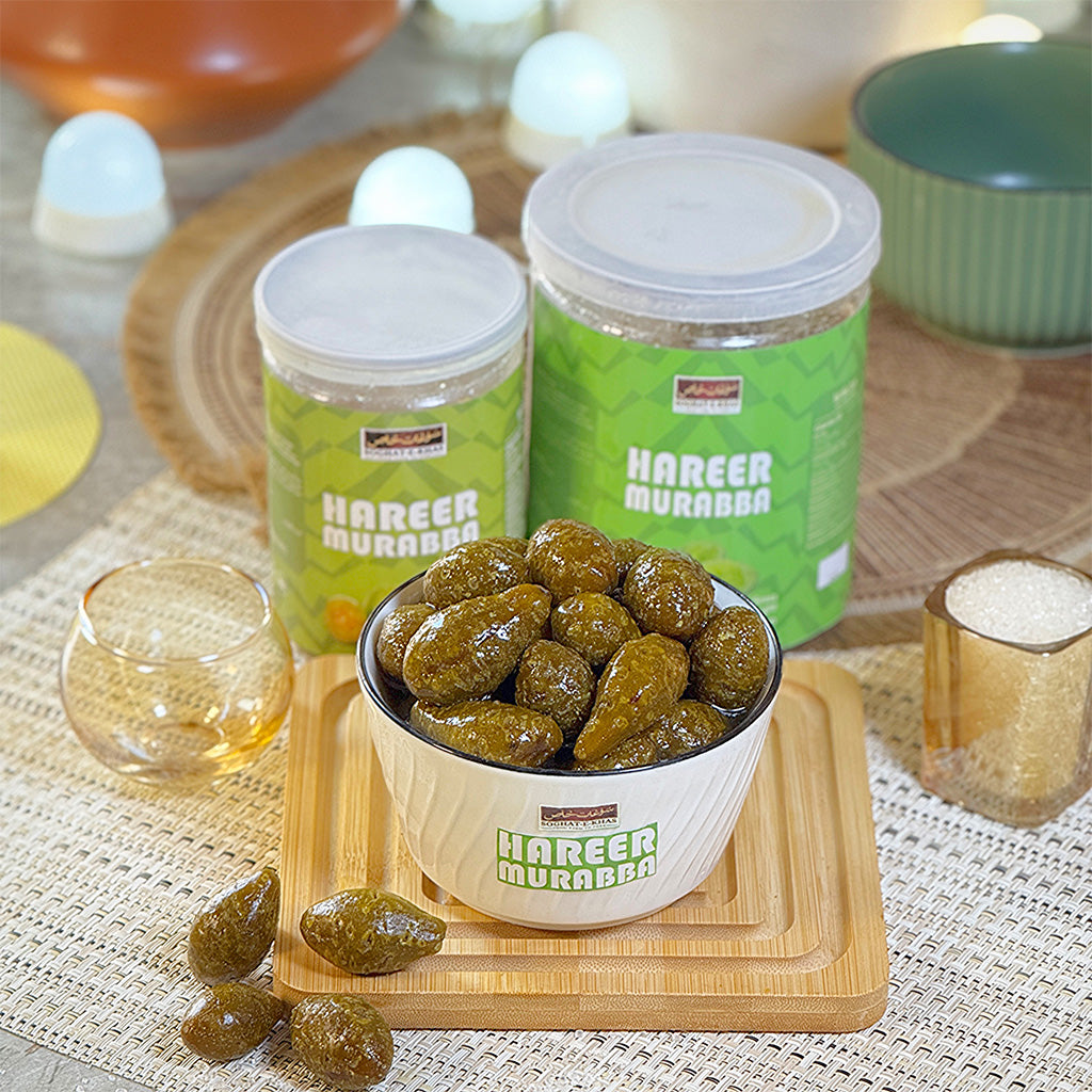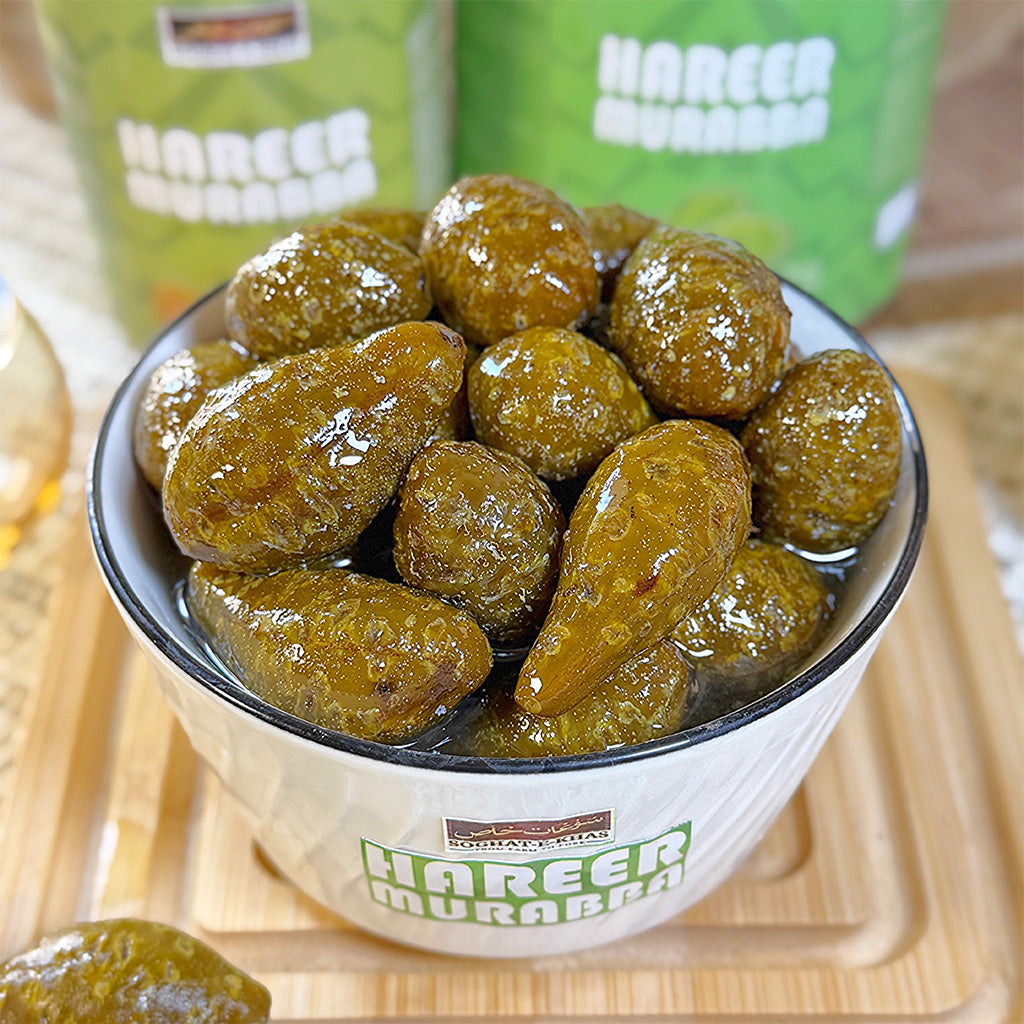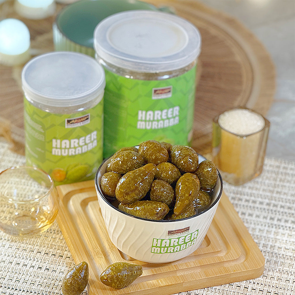 Hareer Murabba (Terminalia Chebula) is a time-honored traditional preserve cherished for its unique blend of earthy sweetness and herbal wellness. Made from carefully selected hareer fruit, it is slowly simmered in pure sugar syrup to bring out its natural benefits and rich, tangy flavor. Deeply rooted in Eastern herbal traditions, this murabba is known for its ability to support digestion, cleanse the system, and promote overall vitality.