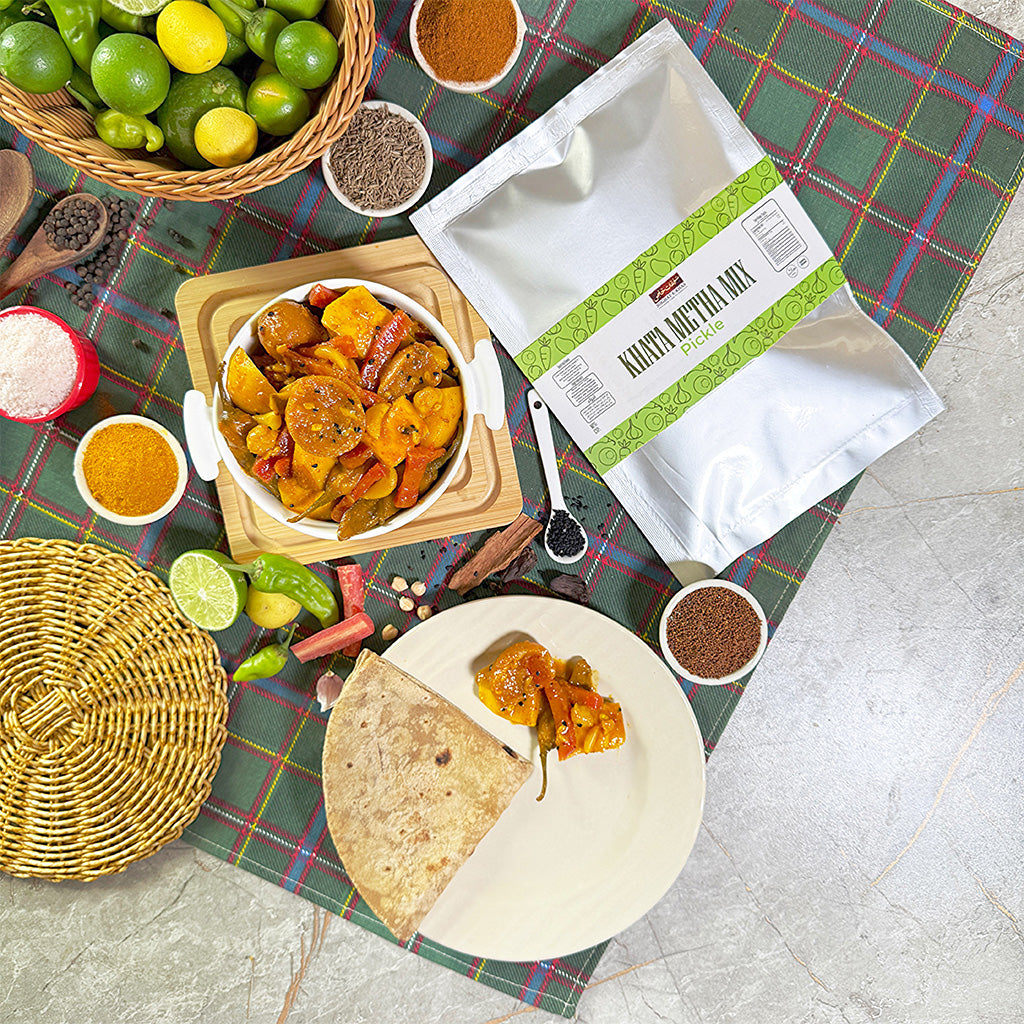 Our Khata Metha Mix Achar is handcrafted in small batches using: