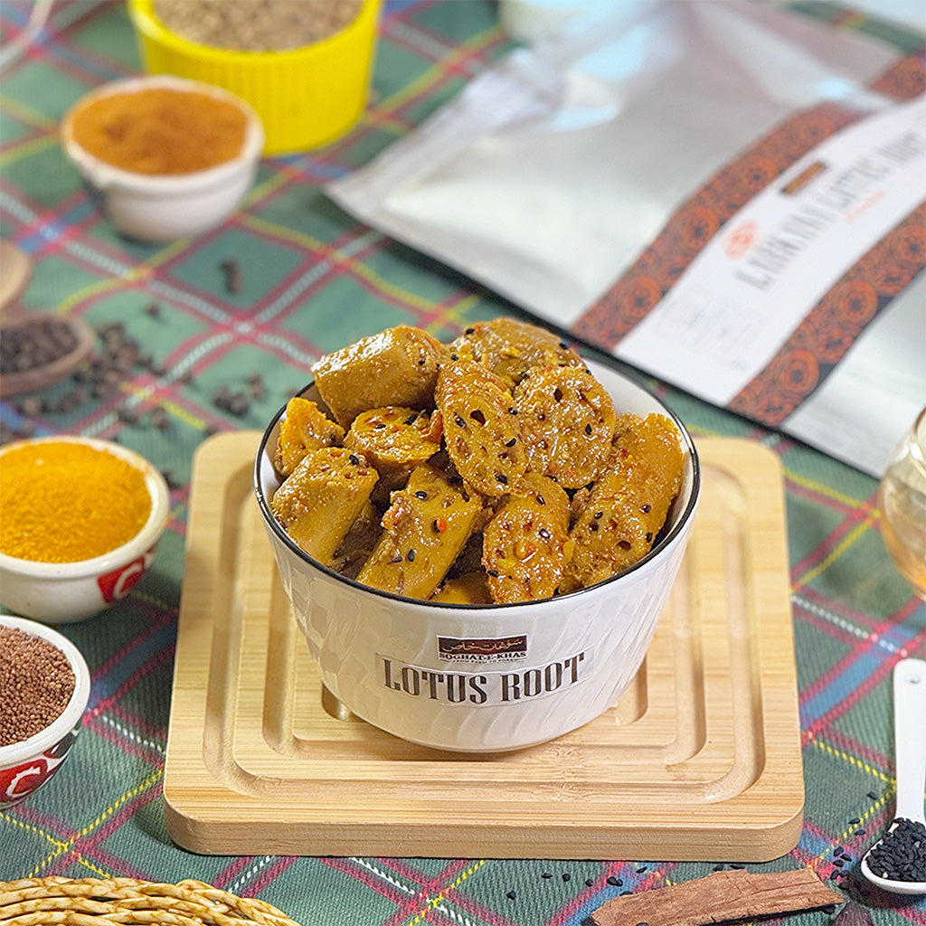 Our Sindhi Lotus Root Pickle is a fast-selling favorite among pickle lovers across Pakistan, especially in Karachi, Lahore, and Islamabad. Now available exclusively at Soghat-e-Khas, you can order online and enjoy nationwide delivery.