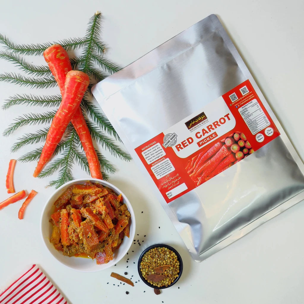 Red Carrot Pickle, or Laal Gajar ka Achar, is a seasonal favorite made from fresh red carrots marinated in a punchy blend of desi spices. Known for its sweet-and-spicy flavor profile, this pickle brings both taste and tradition to your plate—making every meal more vibrant and satisfying.