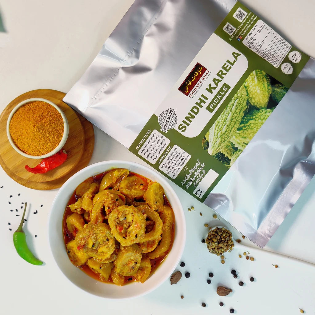 A standout for those who enjoy bold, traditional flavors, our Sindhi Karela Pickle is popular among families in Larkana, Hyderabad, Karachi, and now available across Pakistan via Soghat-e-Khas.