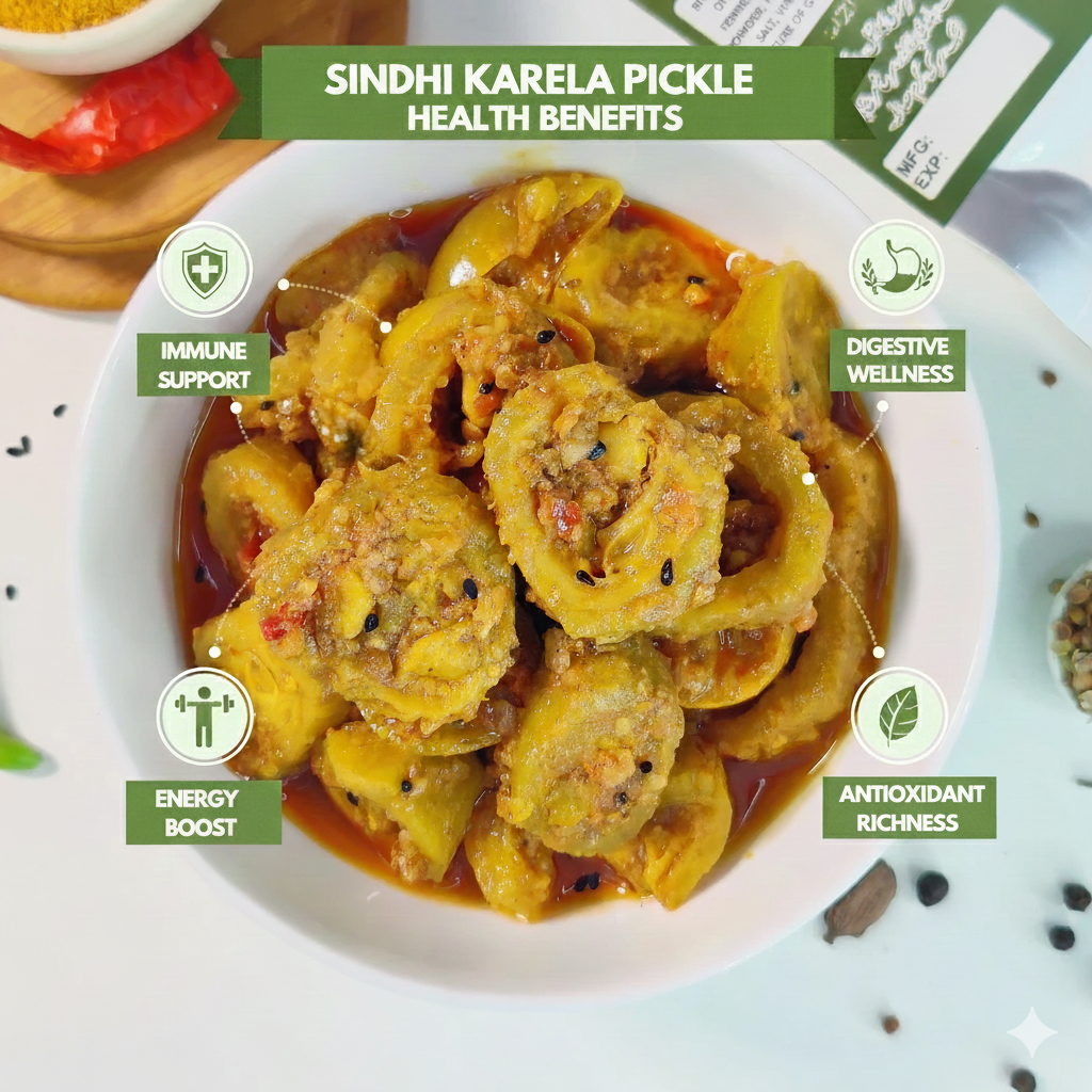Rooted in Sindhi culinary tradition, this pickle is loved for its bold bitterness and sharp contrast to soft, simple foods.